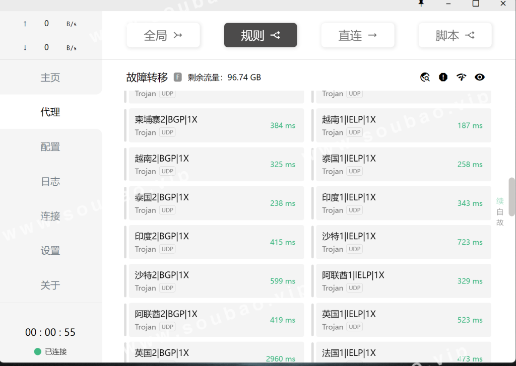 PS:规则模式:国内走国内,国外走国外,国内网速不影响,国外个别网址打不开。
